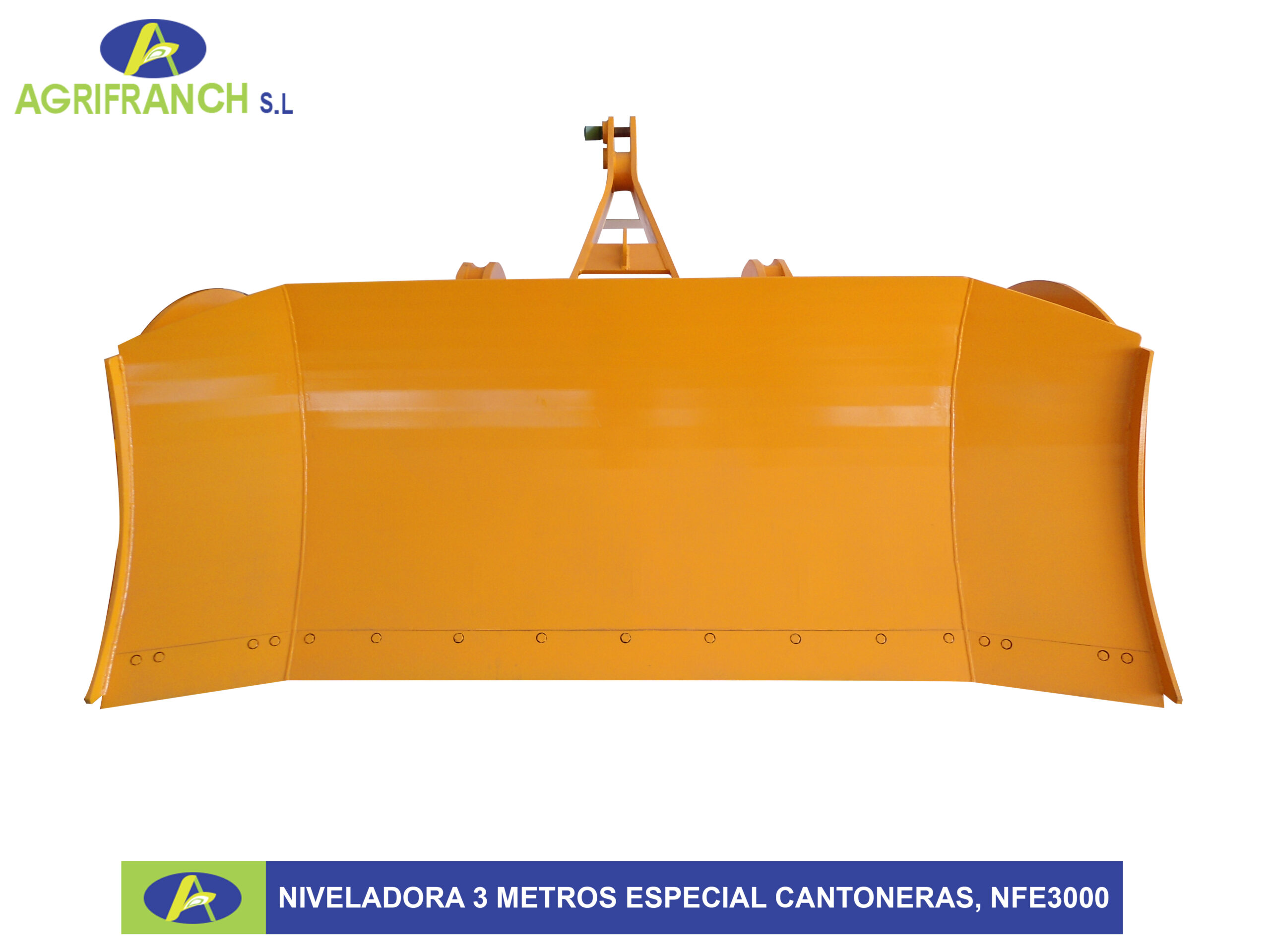 Las niveladoras de doble hoja – de diversas medidas- son maquinas fabricadas para el escampado de toda clase de materiales, como pueden ser tierra, grava o zahorras. Son apropiadas para distribuir con suma facilidad, la carga de varios camiones de gran tonelaje. Su trabajo, tanto hacia delante como hacia atrás, las hace imprescindibles y muy versátiles para tapar zanjas, reparar caminos estropeados por lluvias intensas, etc. Con ellas, se realizan trabajos con un perfecto acabado sin que el tractorista tenga que ser un especialista. Por esto, su amortización es rapidísima.